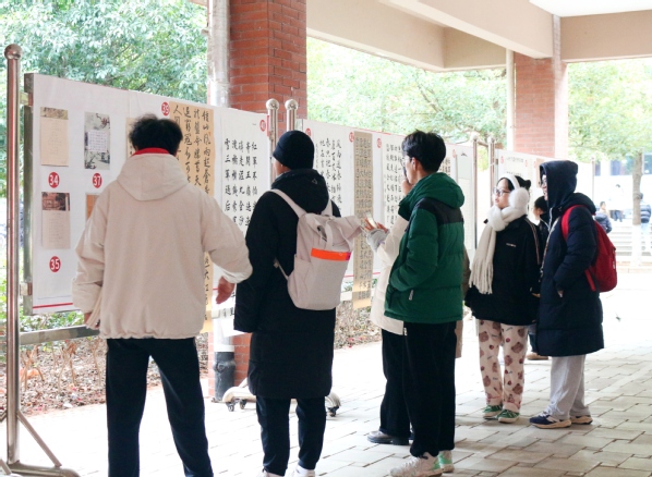 展览分书法、绘画、手工艺品三类,同学们以笔墨抒情,用丹心写意,精心创作出不同时期、不同题材、不同表现形式的符合主题的作品近200幅,吸引了众多师生驻足观看。