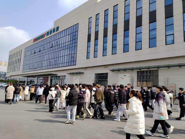 在闻泰通讯人事主管刘海兰带领学生参观了企业员工食堂、宿舍等场所,学生深深感叹公司住宿和用餐条件真不错。在企业培训教室,学生们了解了企业的发展历程及全球化产业布局情况。