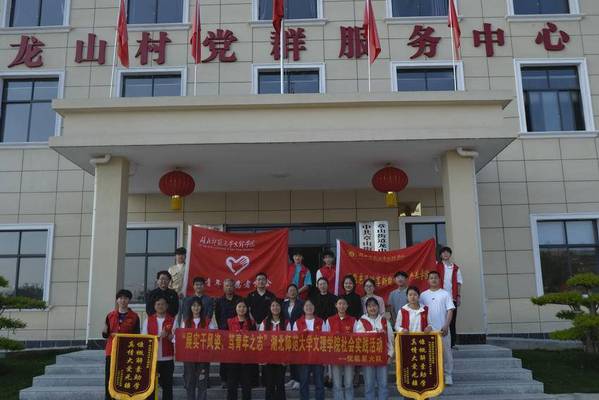 乐动平台校院领导、“优能星火队”志愿队员和龙山村委工作人员在村党群服务中心门口合影留念