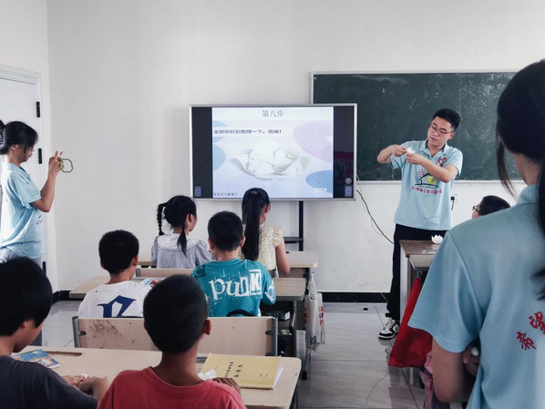 除基础学科的教学以外,志愿者还十分重视对学生综合素质的培养。手工课上,志愿者和学生一起体验制作手工艺品的过程,培养学生的创造力和想象力,有助于提高学生的动手能力和手眼协调能力。