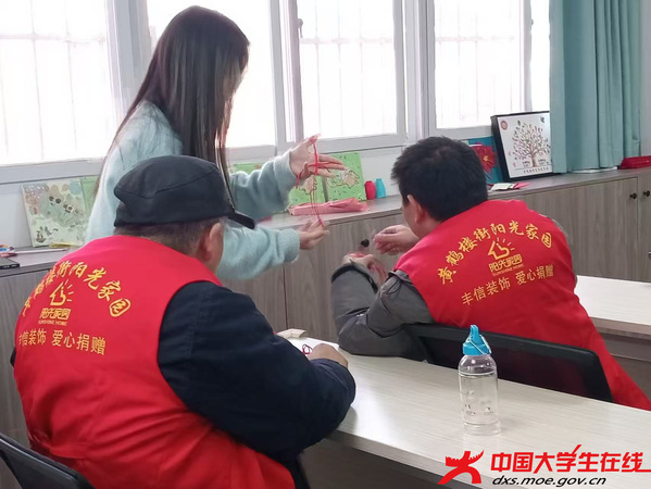 活动中,志愿者仔细讲述中国结承载的吉祥寓意,原本静止的绳结,仿佛被注入生命力。随后,他们将制作步骤清晰拆解,细致讲解,并与残障人士结对,开启一对一指导。手把手教学,耐心与鼓励交融,现场满是融融暖意,欢笑声在活动场地里不断响起。