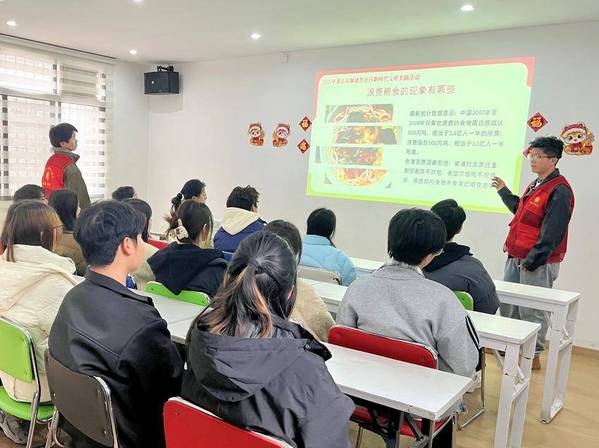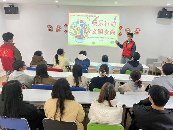 活动开始,乐动平台的大学生志愿者廖帅以“一双公筷的文明之旅”为主题,从中国古代分餐制讲起,结合现代公共卫生需求,阐述使用公筷公勺及践行“光盘行动”的重要性。数据显示,分餐制可将疾病传播风险降低40%以上,而我国餐饮业每年浪费粮食约1800万吨。这些数据引发了在场学生的思考。现场还展示了社区志愿者拍摄的餐饮浪费现象对比图,凸显文明用餐的紧迫性。