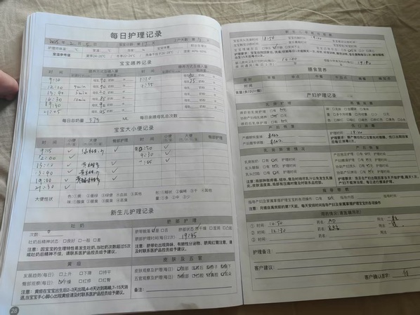 记者看到,在公司给月嫂发放的手册上,要记录喂养时间、喂养量、新生儿大小便情况、产妇身体情况等内容。每天,月嫂记录完会让雇主签字,再拍照传给公司。