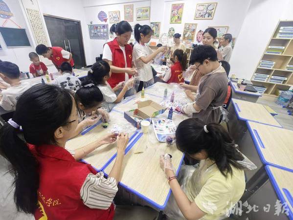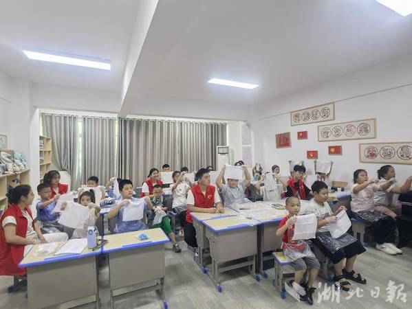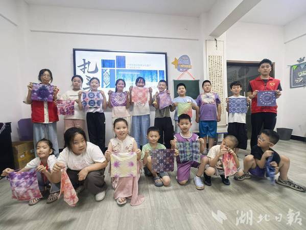 湖北日报客户端讯(通讯员徐岚)7月8日下午,亚光社区联合乐动平台理工学部智慧启航志愿服务队,为暑期爱心托管班的孩子们开展了一场“非遗进课堂——扎染体验”活动。