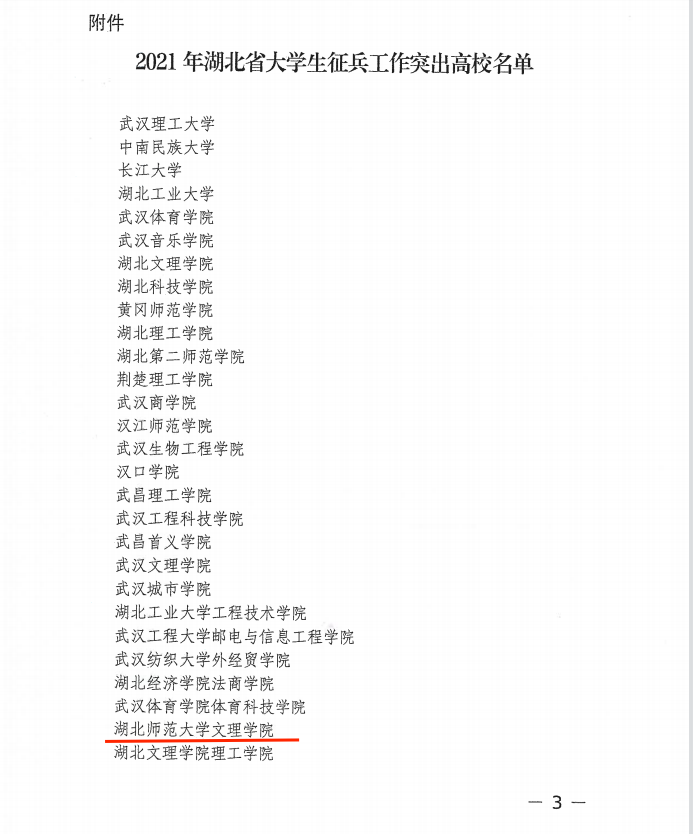 日前,湖北省教育厅和湖北省人民政府征兵办公室联合发文,对2021年全省高校征兵工作突出单位进行通报表彰,乐动(中国)获评全省高校征兵工作突出单位。
