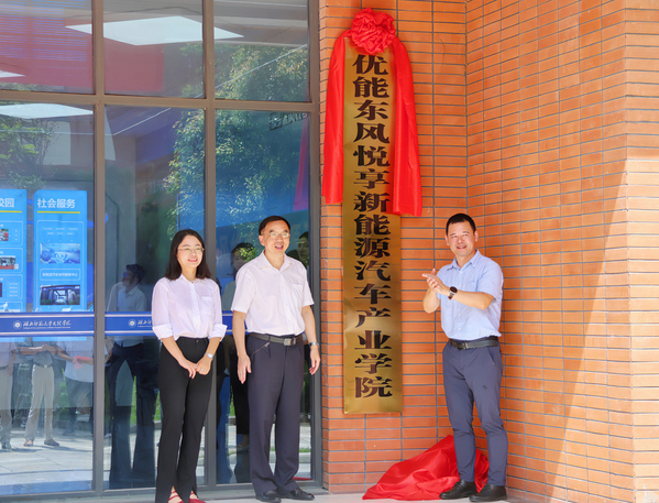 随后,乐动平台院长李开灿,武汉优能高教科技有限公司董事长高国虎,东风悦享科技有限公司总监王艺璇为“优能东风悦享新能源汽车产业学院”进行剪彩并揭牌。
