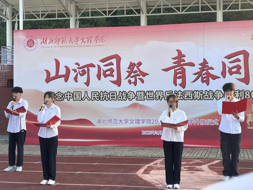 优秀学生代表陈思雨向全体学生发起倡议,她倡导同学们要铭记抗战精神,将“勤学、善思、励志、诚信”的精神融入学习中,做到立远志、见贤思齐、自律守纪、科学学习、建设班风,争做有理想有担当的新时代青年,用青春力量助力民族复兴。